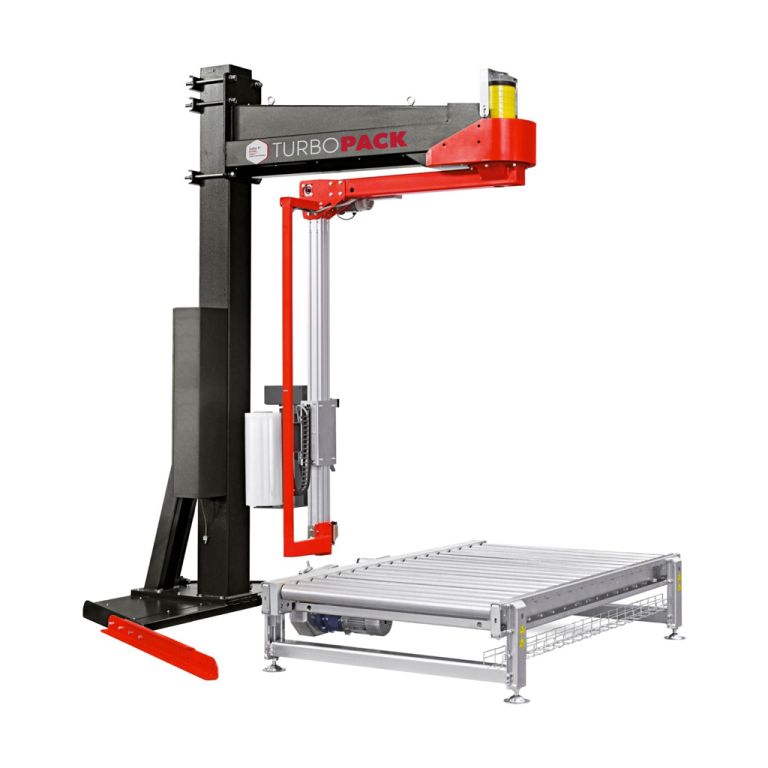 L’avvolgitore automatico intelligente e ideale per creare una stazione di imballaggio con entrata ed uscita con rulliera motorizzata.