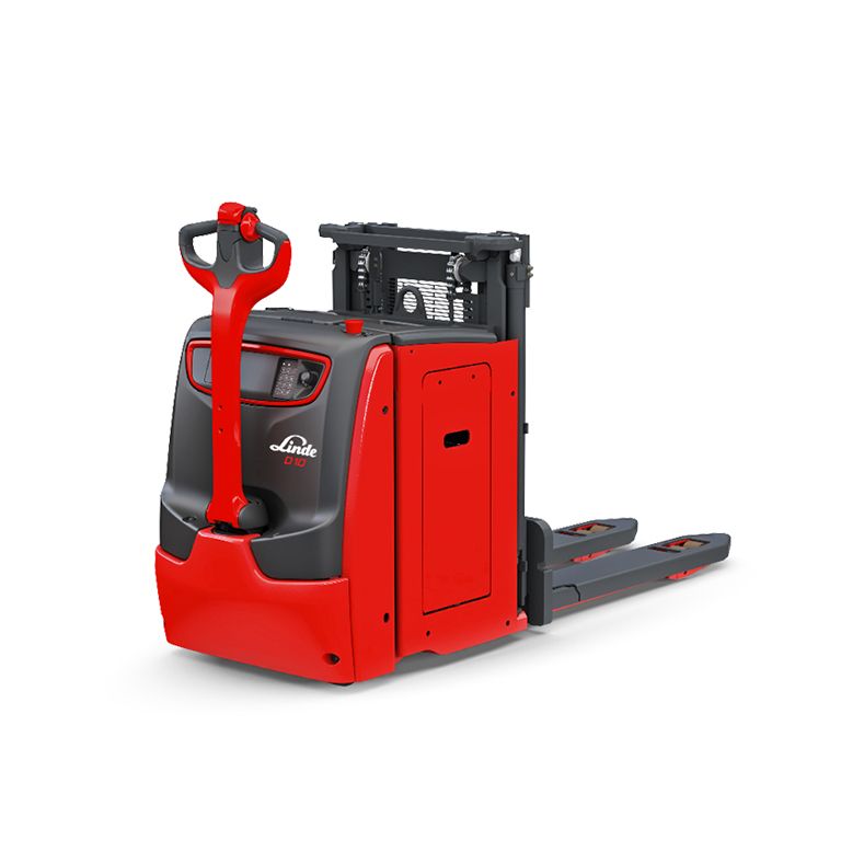 Lo stoccatore D10 di Linde Material Handling consente un rapido flusso di materiale anche in ambienti ristretti e con traffico elevato. È in grado di trasportare due pallet contemporaneamente sulle forche con un peso totale di 2.000 kg. Gli innovativi rulli sterzanti garantiscono stabilità durante il trasporto e per le operazioni di carico e scarico.
