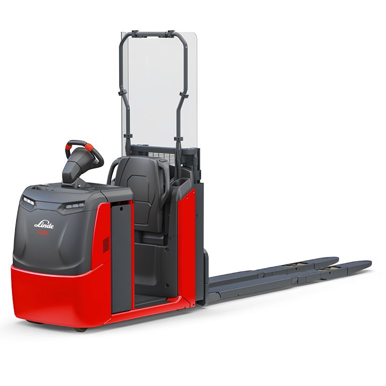 Il carrello commissionatore N20 C LoL consente, grazie a lunghe forche di carico e alla forca supplementare sollevabile, di riempire ergonomicamente due pallet in un unico ciclo di commissionamento. Il conducente parte inizialmente con un pallet nell’altezza desiderata, mentre in via opzionale un secondo viene fissato verticalmente sul retro della forca con un fissaggio speciale. Non appena il primo pallet è pieno, viene abbassato sui bracci di carico e trasportato davanti alla forca.